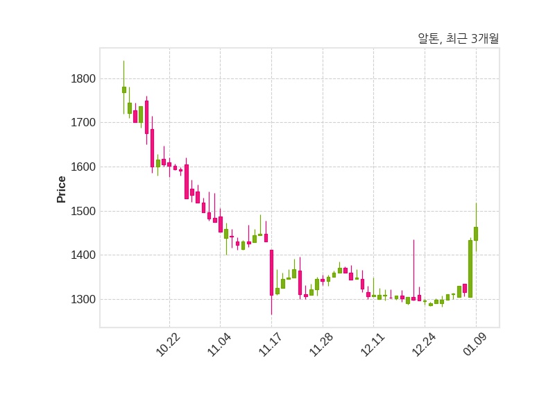 한편, 알톤의 09시 46분 현재주가는 1,464원으로 직전 거래일 대비 31원(+2.16%) 상승이며, 거래량은 139,739주이다.