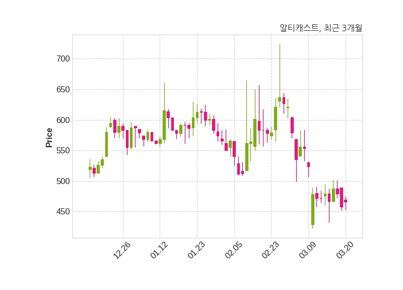 알티캐스트는 특별관계자 위드윈투자조합79호의 지분율이 0.0%에서 20.33%로 변동했다고 20일 공시했다. 한편, 알티캐스트의 15시 20분 현재주가는 466원으로 직전 거래일 대비 8원(+1.75%) 상승이며, 거래량은 79,675주이다.