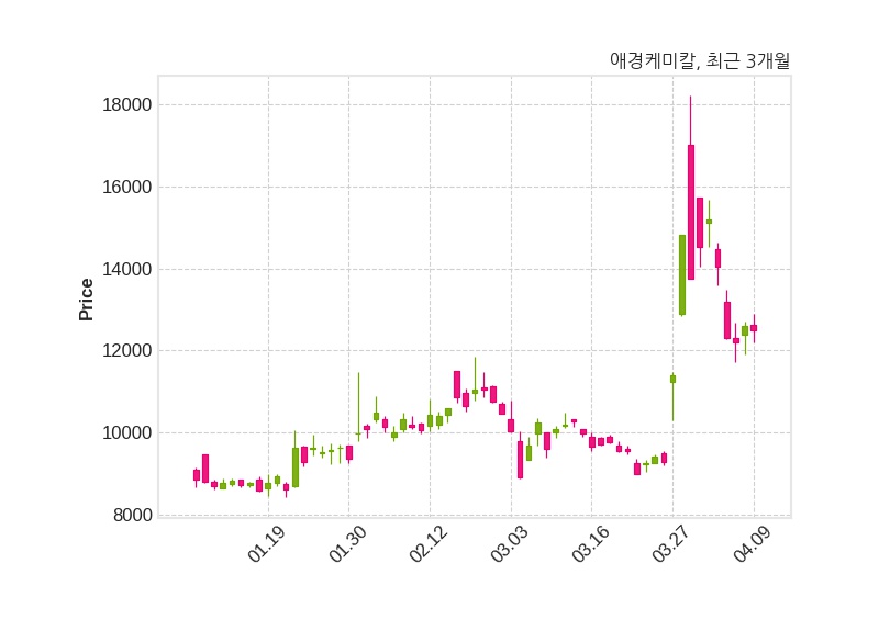 한편, 애경케미칼은 장 마감 이후 해당 기업공시를 발표했으며 오늘 종가가 12,500원, 거래량은 1,070,119주로, 직전 거래일 대비 100원(-0.79%) 하락했다.