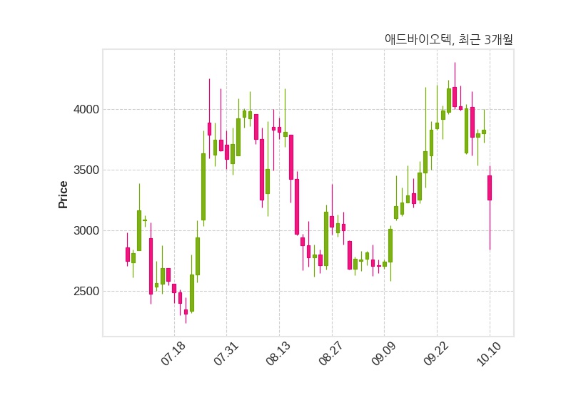 애드바이오텍은 특별관계자 정홍걸의 지분율이 7.9%에서 10.05%로 변동했다고 10일 공시했다. 한편, 애드바이오텍은 장 마감 이후 해당 기업공시를 발표했으며 오늘 종가가 3,255원, 거래량은 1,851,343주로, 직전 거래일 대비 575원(-15.01%) 하락했다.