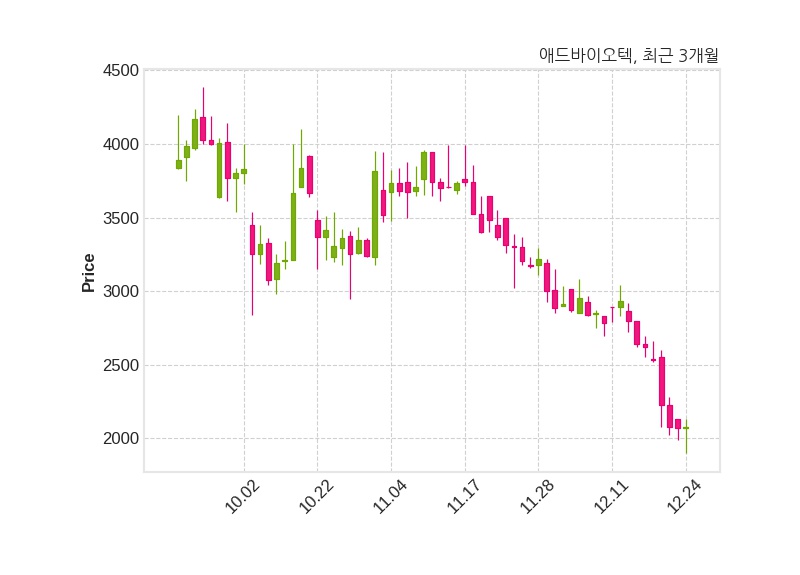 한편, 애드바이오텍은 장 마감 이후 해당 기업공시를 발표했으며 오늘 종가가 2,080원, 거래량은 190,427주로, 직전 거래일 대비 10원(+0.48%) 상승했다.