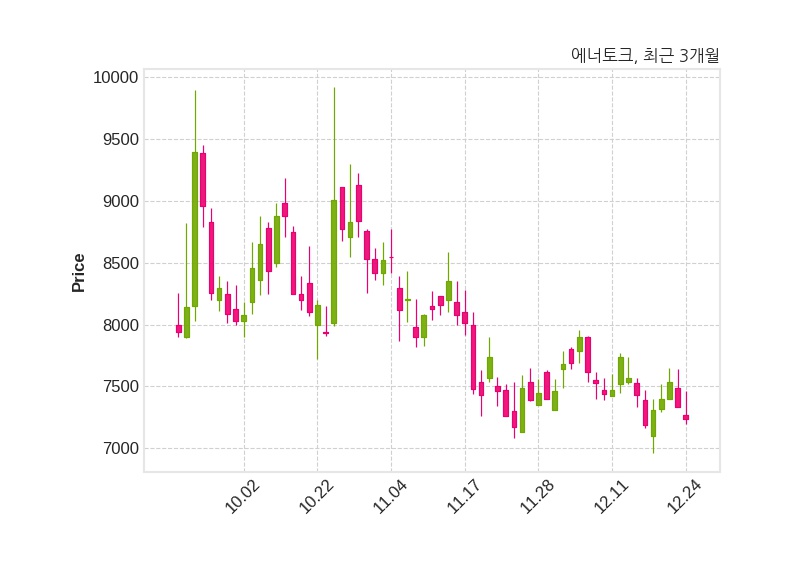 한편, 에너토크의 11시 27분 현재주가는 7,260원으로 직전 거래일 대비 70원(-0.95%) 하락이며, 거래량은 41,779주이다.