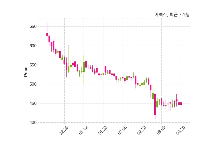 한편, 에넥스의 13시 15분 현재주가는 447원으로 직전 거래일 대비 변동없으며, 거래량은 180,371주이다.
