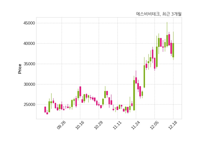 한편, 에스비비테크는 장 마감 이후 해당 기업공시를 발표했으며 오늘 종가가 40,050원, 거래량은 575,305주로, 직전 거래일 대비 2,550원(+6.8%) 상승했다.