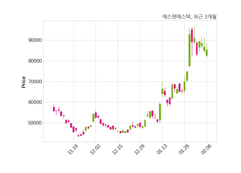 에스앤에스텍은 특별관계자 삼성자산운용의 지분율이 8.36%에서 5.05%로 변동했다고 06일 공시했다. 한편, 에스앤에스텍은 장 마감 이후 해당 기업공시를 발표했으며 오늘 종가가 85,300원, 거래량은 268,331주로, 직전 거래일 대비 1,500원(-1.73%) 하락했다.