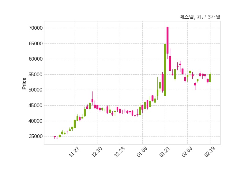한편, 에스엘은 장 마감 이후 해당 기업공시를 발표했으며 오늘 종가가 55,100원, 거래량은 202,237주로, 직전 거래일 대비 2,600원(+4.95%) 상승했다.