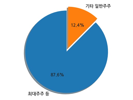 현재 최대주주 등 특별관계자의 소유주식은 총 97,437,465주로 발행주식 총수의 87.58%이다.