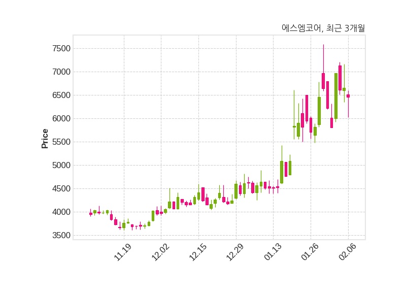 한편, 에스엠코어는 장 마감 이후 해당 기업공시를 발표했으며 오늘 종가가 6,450원, 거래량은 598,618주로, 직전 거래일 대비 200원(-3.01%) 하락했다.