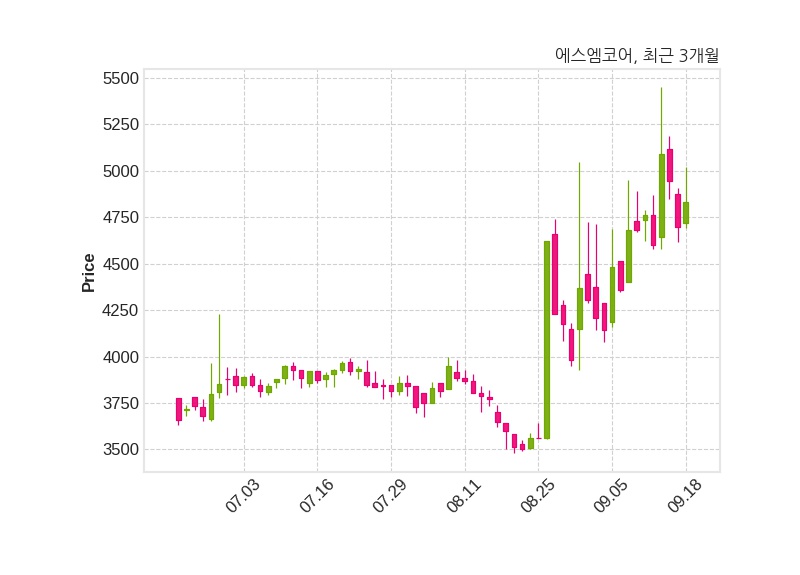 한편, 에스엠코어는 장 마감 이후 해당 기업공시를 발표했으며 오늘 종가가 4,835원, 거래량은 1,706,338주로, 직전 거래일 대비 135원(+2.87%) 상승했다.