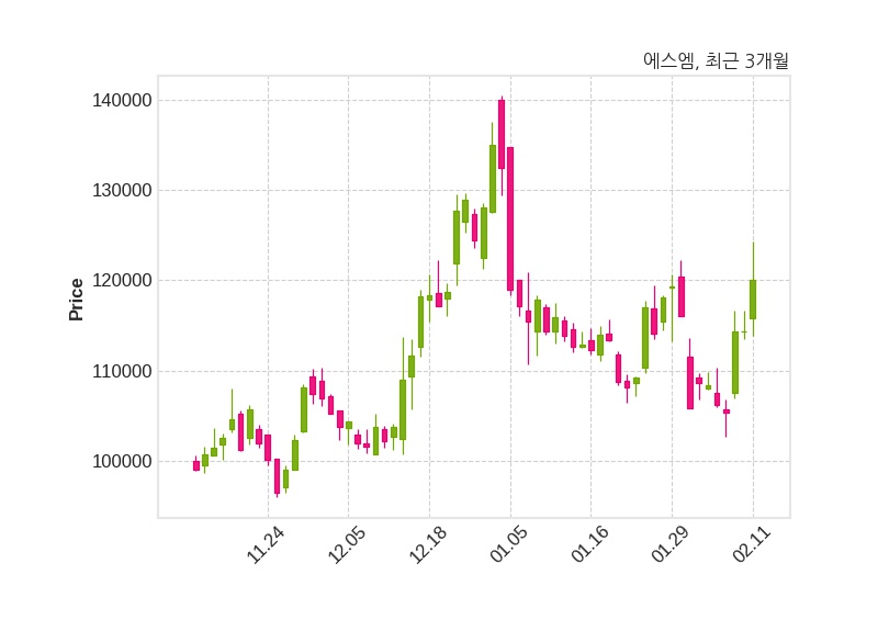 한편, 에스엠의 15시 04분 현재주가는 120,100원으로 직전 거래일 대비 5,700원(+4.98%) 상승이며, 거래량은 245,769주이다.