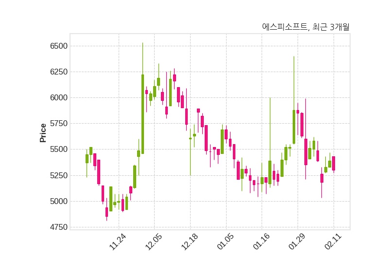 한편, 에스피소프트는 장 마감 이후 해당 기업공시를 발표했으며 오늘 종가가 5,300원, 거래량은 66,946주로, 직전 거래일 대비 90원(-1.67%) 하락했다.
