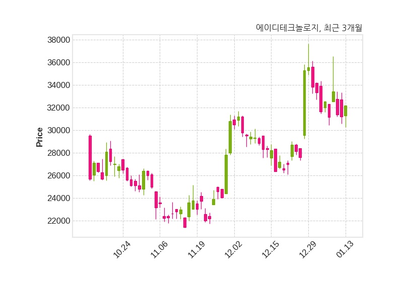 한편, 에이디테크놀로지의 14시 12분 현재주가는 32,200원으로 직전 거래일 대비 1,000원(+3.21%) 상승이며, 거래량은 194,521주이다.