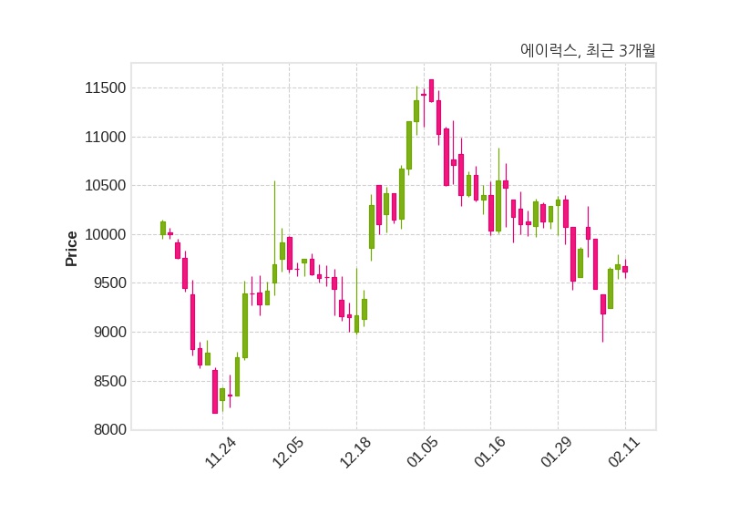 한편, 에이럭스는 장 마감 이후 해당 기업공시를 발표했으며 오늘 종가가 9,620원, 거래량은 40,922주로, 직전 거래일 대비 70원(-0.72%) 하락했다.