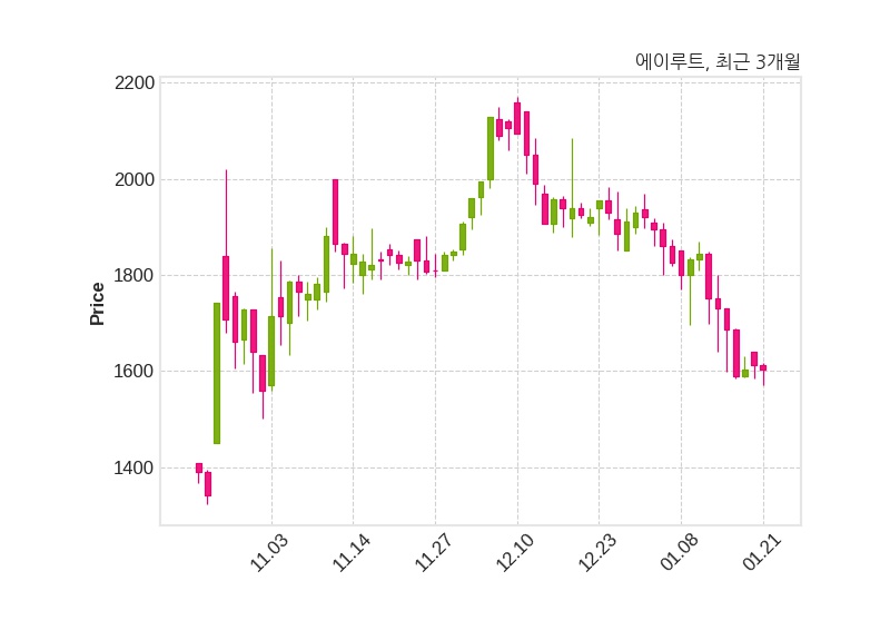에이루트는 특별관계자 최정임의 지분율이 17.25%에서 17.07%로 변동했다고 21일 공시했다. 한편, 에이루트는 장 마감 이후 해당 기업공시를 발표했으며 오늘 종가가 1,603원, 거래량은 36,814주로, 직전 거래일 대비 9원(-0.56%) 하락했다.