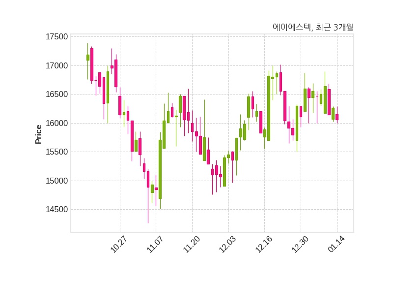 한편, 에이에스텍은 장 마감 이후 해당 기업공시를 발표했으며 오늘 종가가 16,060원, 거래량은 3,911주로, 직전 거래일 대비 200원(-1.23%) 하락했다.