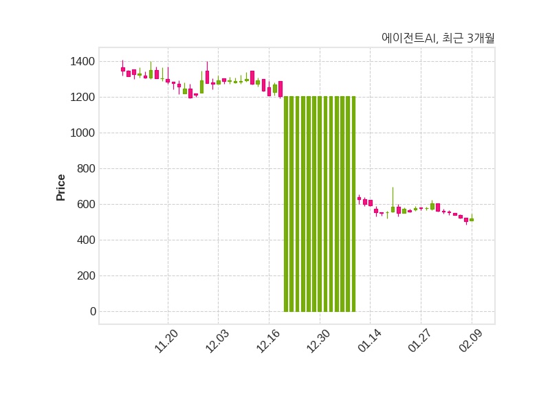 한편, 에이전트AI은 장 마감 이후 해당 기업공시를 발표했으며 오늘 종가가 520원, 거래량은 213,013주로, 직전 거래일 대비 15원(+2.97%) 상승했다.