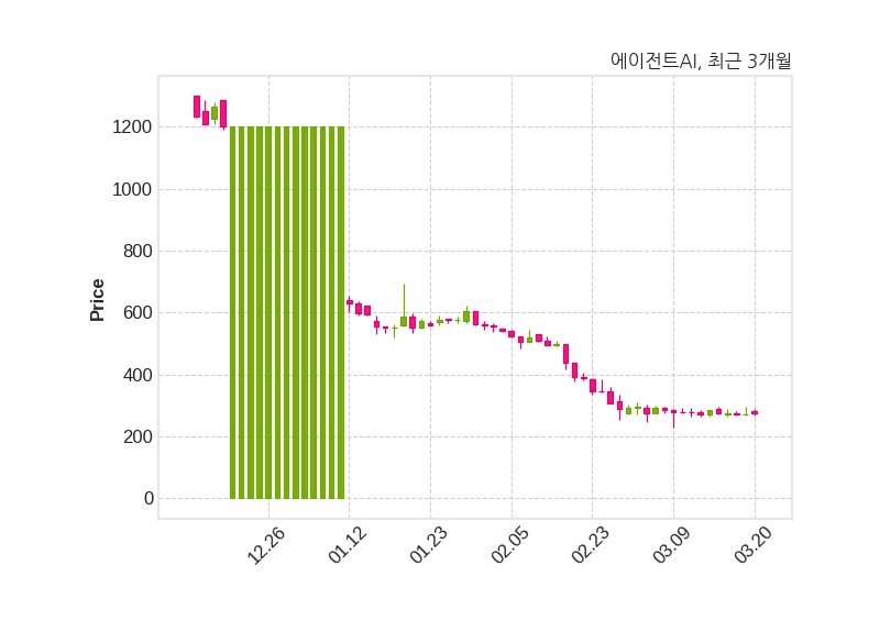 한편, 에이전트AI은 장 마감 이후 해당 기업공시를 발표했으며 오늘 종가가 273원, 거래량은 428,688주로, 직전 거래일 대비 1원(+0.37%) 상승했다.