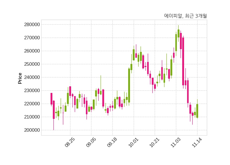 한편, 에이피알은 장 마감 이후 해당 기업공시를 발표했으며 오늘 종가가 219,500원, 거래량은 703,586주로, 직전 거래일 대비 6,000원(+2.81%) 상승했다.