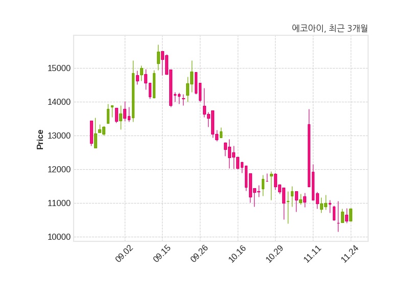 에코아이는 특별관계자 전종수의 지분율이 71.66%에서 71.61%로 변동했다고 24일 공시했다. 한편, 에코아이의 14시 49분 현재주가는 10,830원으로 직전 거래일 대비 360원(+3.44%) 상승이며, 거래량은 15,993주이다.