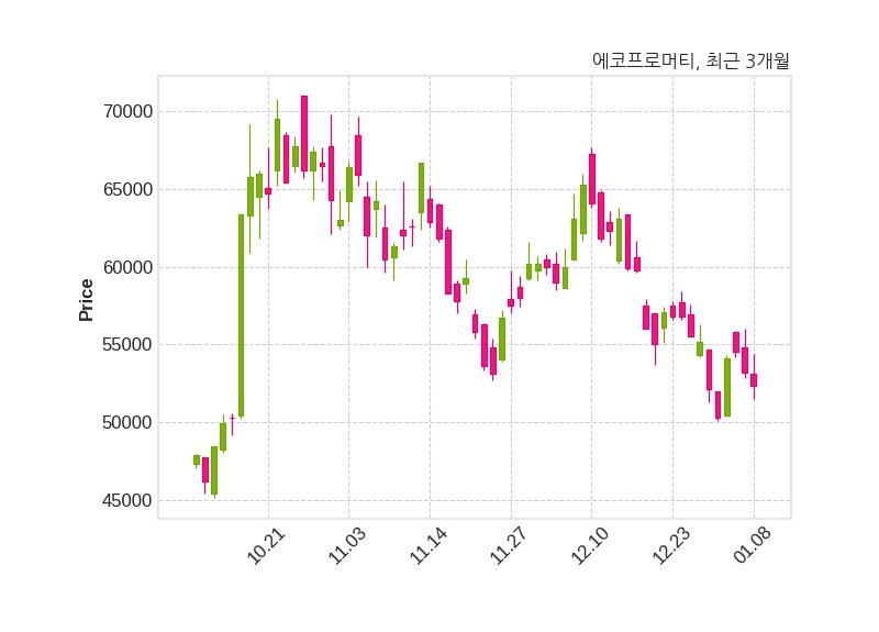 한편, 에코프로머티는 장 마감 이후 해당 기업공시를 발표했으며 오늘 종가가 52,300원, 거래량은 237,847주로, 직전 거래일 대비 900원(-1.69%) 하락했다.