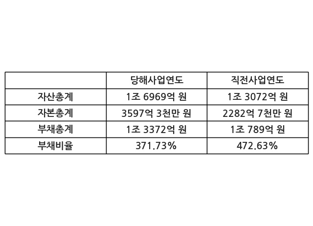 또한, 이번사업연도의 자산총계는 1조 6969억 원으로 직전사업연도 대비 29.82% 증가한 한편, 부채총계는 1조 3372억 원으로 23.94% 증가, 자본총계는 3597억 3천만 원으로 57.59% 증가했다.