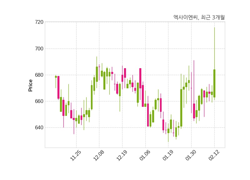 한편, 엑사이엔씨는 장 마감 이후 해당 기업공시를 발표했으며 오늘 종가가 684원, 거래량은 470,199주로, 직전 거래일 대비 17원(+2.55%) 상승했다.