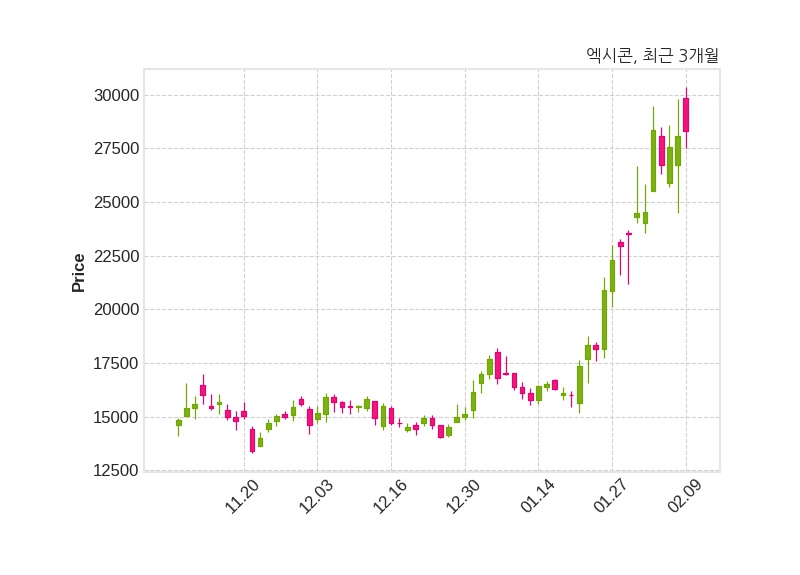 한편, 엑시콘은 장 마감 이후 해당 기업공시를 발표했으며 오늘 종가가 28,300원, 거래량은 485,442주로, 직전 거래일 대비 200원(+0.71%) 상승했다.