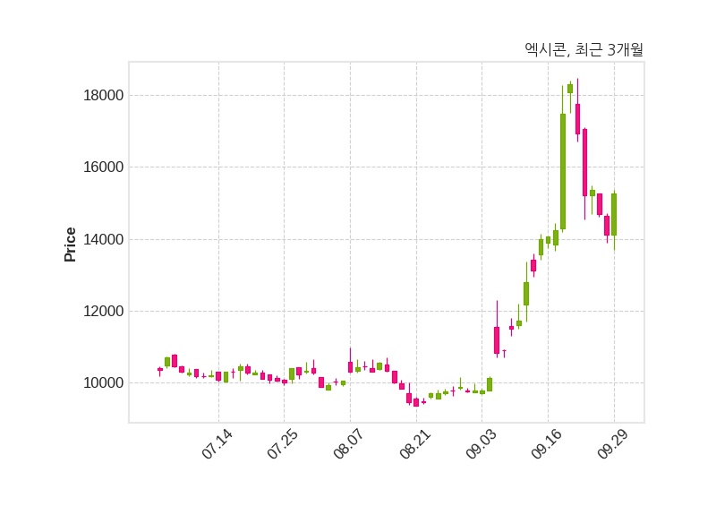 한편, 엑시콘의 10시 59분 현재주가는 15,270원으로 직전 거래일 대비 1,160원(+8.22%) 상승이며, 거래량은 421,624주이다.