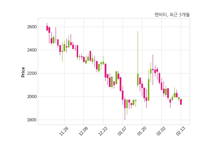 한편, 엔비티는 장 마감 이후 해당 기업공시를 발표했으며 오늘 종가가 1,931원, 거래량은 66,687주로, 직전 거래일 대비 62원(-3.11%) 하락했다.
