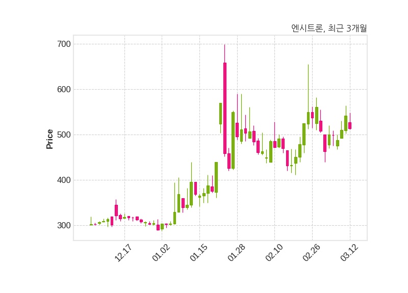 한편, 엔시트론은 장 마감 이후 해당 기업공시를 발표했으며 오늘 종가가 513원, 거래량은 1,710,291주로, 직전 거래일 대비 28원(-5.18%) 하락했다.