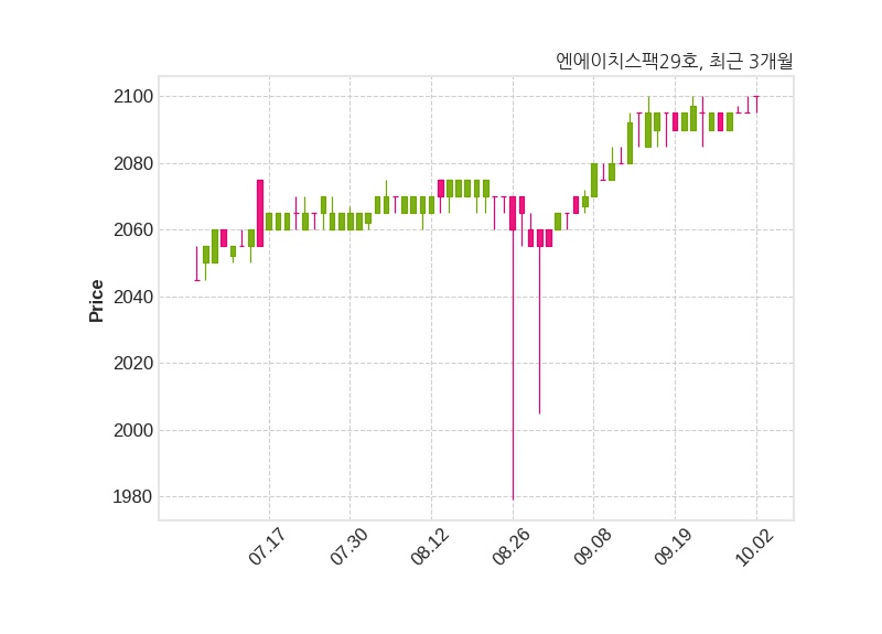 엔에이치스팩29호는 특별관계자 케이비증권의 지분율이 7.93%에서 5.75%로 변동했다고 02일 공시했다. 한편, 엔에이치스팩29호는 장 마감 이후 해당 기업공시를 발표했으며 오늘 종가가 2,100원, 거래량은 17,391주로, 직전 거래일 대비 5원(+0.24%) 상승했다.