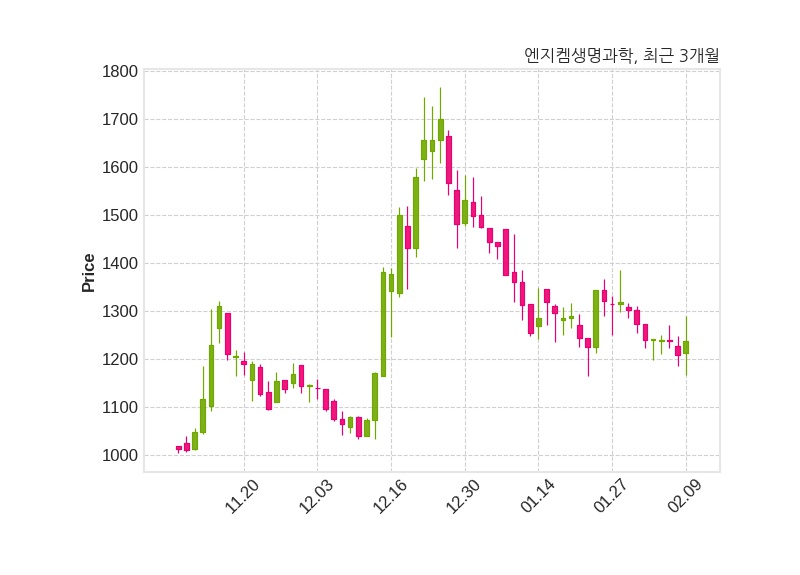 한편, 엔지켐생명과학은 장 마감 이후 해당 기업공시를 발표했으며 오늘 종가가 1,237원, 거래량은 387,969주로, 직전 거래일 대비 30원(+2.49%) 상승했다.
