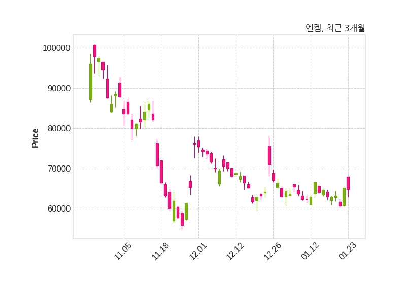한편, 엔켐은 장 마감 이후 해당 기업공시를 발표했으며 오늘 종가가 64,800원, 거래량은 359,522주로, 직전 거래일 대비 400원(-0.61%) 하락했다.