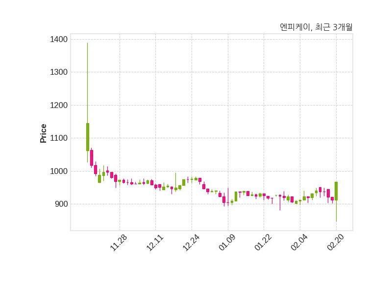 한편, 엔피케이의 13시 40분 현재주가는 967원으로 직전 거래일 대비 54원(+5.91%) 상승이며, 거래량은 155,054주이다.