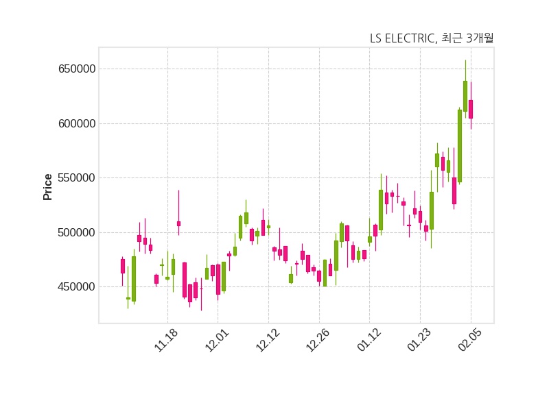 한편, 엘에스일렉트릭의 15시 01분 현재주가는 605,000원으로 직전 거래일 대비 34,000원(-5.32%) 하락이며, 거래량은 181,316주이다.