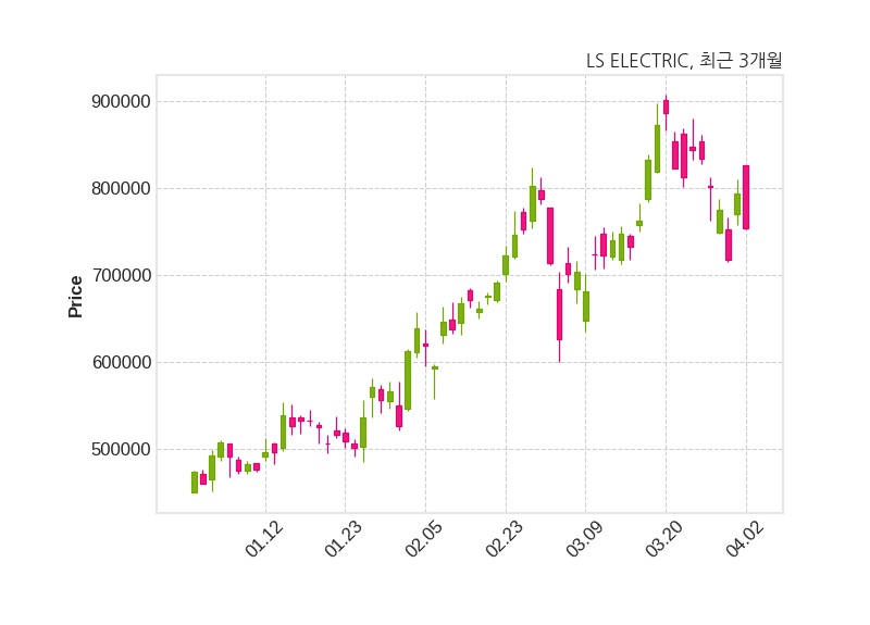 한편, 엘에스일렉트릭의 11시 26분 현재주가는 754,000원으로 직전 거래일 대비 40,000원(-5.04%) 하락이며, 거래량은 119,275주이다.