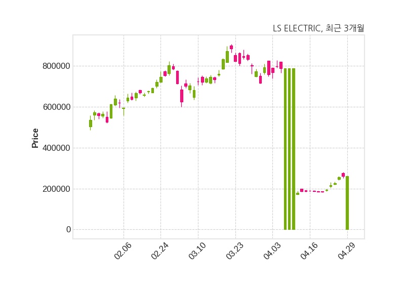 한편, 엘에스일렉트릭의 09시 00분 현재주가는 261,500원으로 직전 거래일 대비 변동없으며, 거래량은 20주이다.