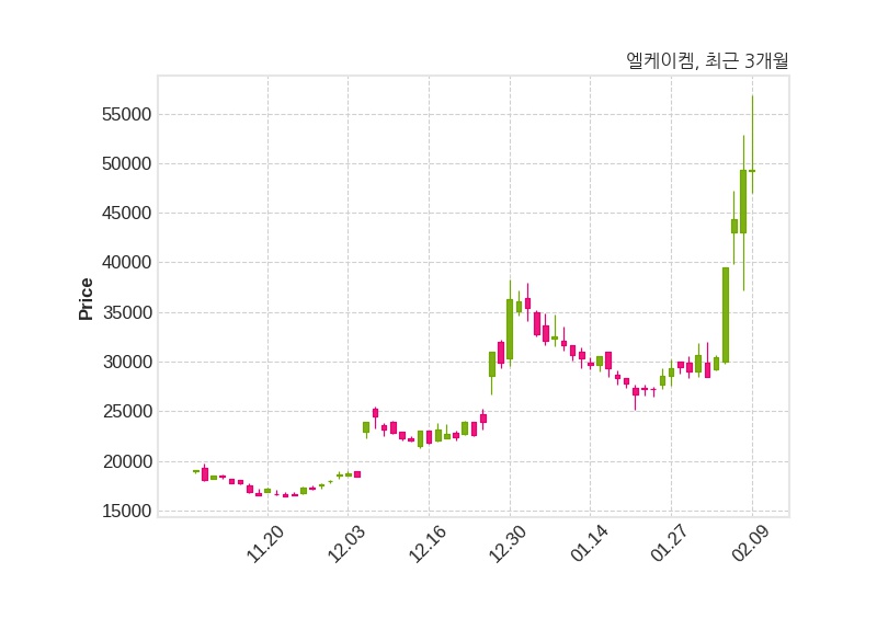 한편, 엘케이켐은 장 마감 이후 해당 기업공시를 발표했으며 오늘 종가가 49,350원, 거래량은 1,281,500주로, 직전 거래일 대비 변동이없다.