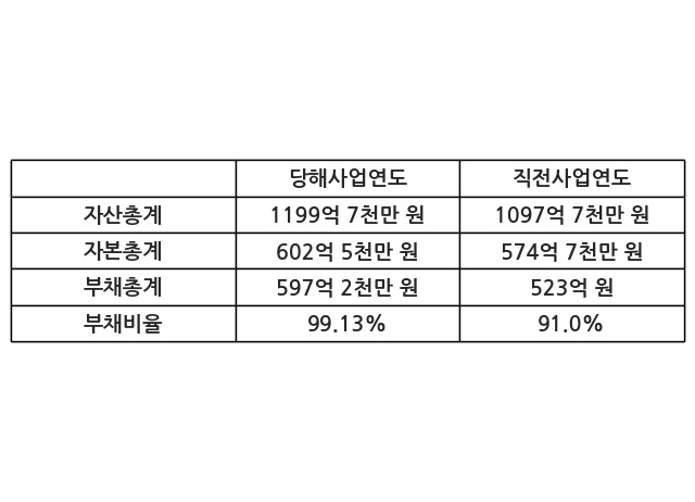 또한, 이번사업연도의 자산총계는 1199억 7천만 원으로 직전사업연도 대비 9.29% 증가한 한편, 부채총계는 597억 2천만 원으로 14.19% 증가, 자본총계는 602억 5천만 원으로 4.84% 증가했다.