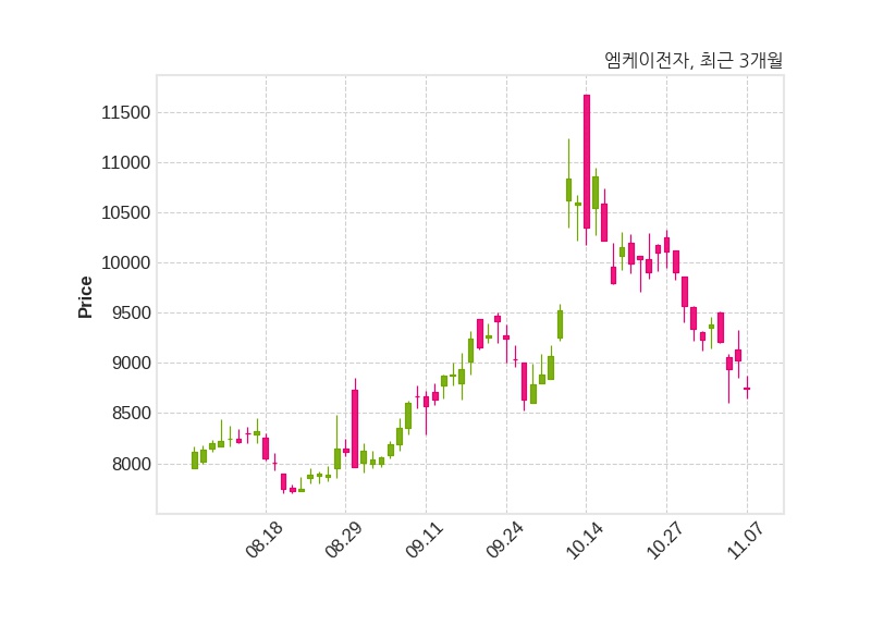 엠케이전자는 특별관계자 한국채권투자운용의 지분율이 7.29%에서 8.3%로 변동했다고 07일 공시했다. 한편, 엠케이전자의 13시 22분 현재주가는 8,740원으로 직전 거래일 대비 290원(-3.21%) 하락이며, 거래량은 110,913주이다.