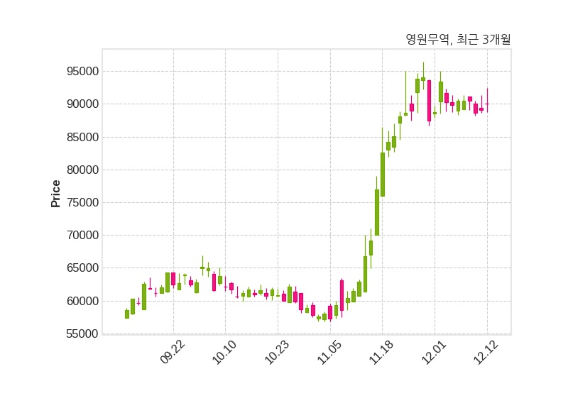 한편, 영원무역은 장 마감 이후 해당 기업공시를 발표했으며 오늘 종가가 90,000원, 거래량은 99,795주로, 직전 거래일 대비 900원(+1.01%) 상승했다.