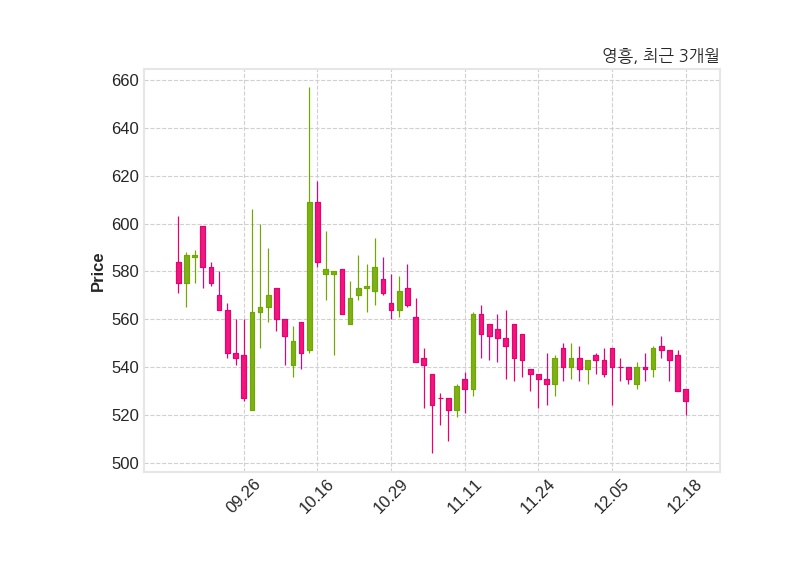 한편, 영흥의 14시 54분 현재주가는 526원으로 직전 거래일 대비 4원(-0.75%) 하락이며, 거래량은 155,371주이다.