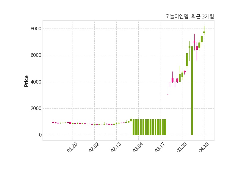 오늘이엔엠은 특별관계자 오늘바이오의 지분율이 6.89%에서 20.38%로 변동했다고 10일 공시했다. 한편, 오늘이엔엠은 장 마감 이후 해당 기업공시를 발표했으며 오늘 종가가 7,770원, 거래량은 428,200주로, 직전 거래일 대비 320원(+4.3%) 상승했다.