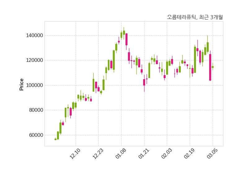 한편, 오름테라퓨틱은 장 마감 이후 해당 기업공시를 발표했으며 오늘 종가가 115,000원, 거래량은 271,712주로, 직전 거래일 대비 11,000원(+10.58%) 상승했다.