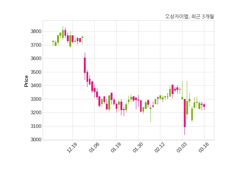 오상자이엘은 특별관계자 오상의 지분율이 37.71%에서 37.58%로 변동했다고 16일 공시했다. 한편, 오상자이엘의 11시 04분 현재주가는 3,245원으로 직전 거래일 대비 15원(-0.46%) 하락이며, 거래량은 19,496주이다.