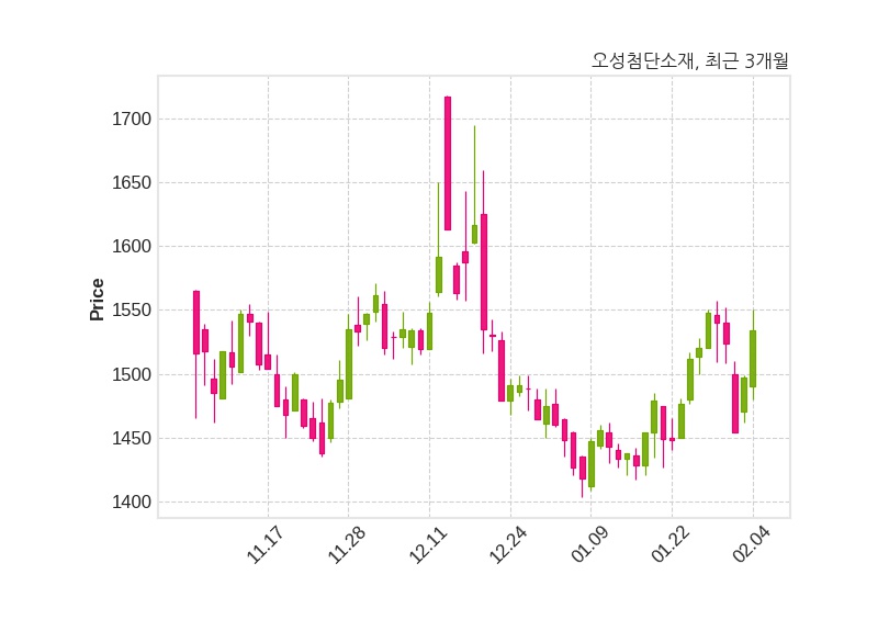 한편, 오성첨단소재는 장 마감 이후 해당 기업공시를 발표했으며 오늘 종가가 1,534원, 거래량은 883,134주로, 직전 거래일 대비 37원(+2.47%) 상승했다.