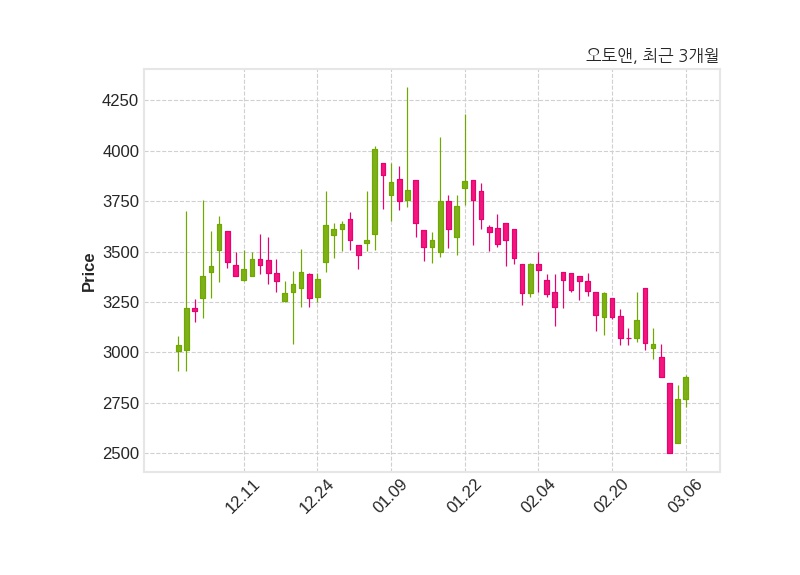 한편, 오토앤은 장 마감 이후 해당 기업공시를 발표했으며 오늘 종가가 2,880원, 거래량은 33,432주로, 직전 거래일 대비 110원(+3.97%) 상승했다.
