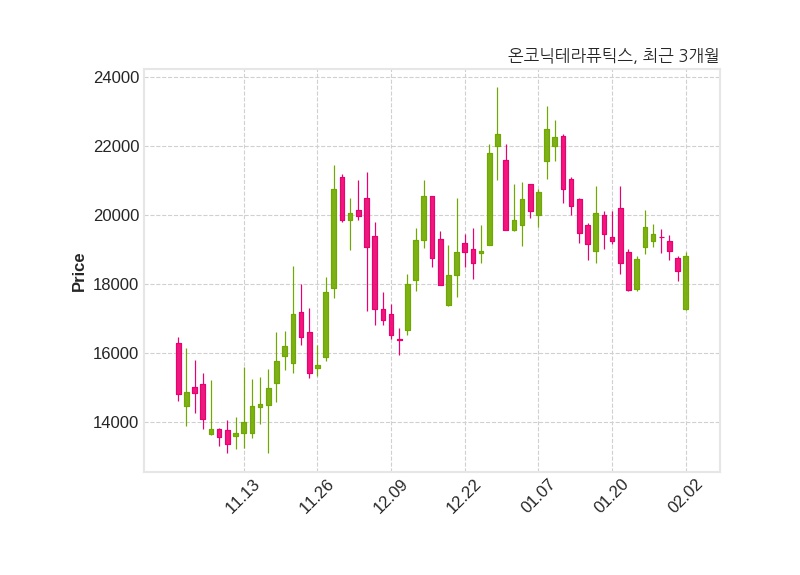 한편, 온코닉테라퓨틱스의 11시 17분 현재주가는 18,820원으로 직전 거래일 대비 450원(+2.45%) 상승이며, 거래량은 530,346주이다.