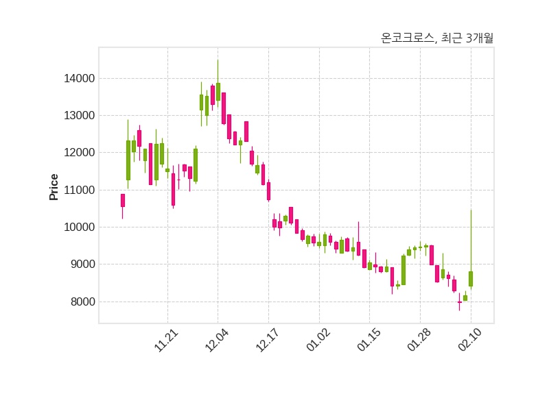 한편, 온코크로스는 장 마감 이후 해당 기업공시를 발표했으며 오늘 종가가 8,810원, 거래량은 3,778,741주로, 직전 거래일 대비 650원(+7.97%) 상승했다.