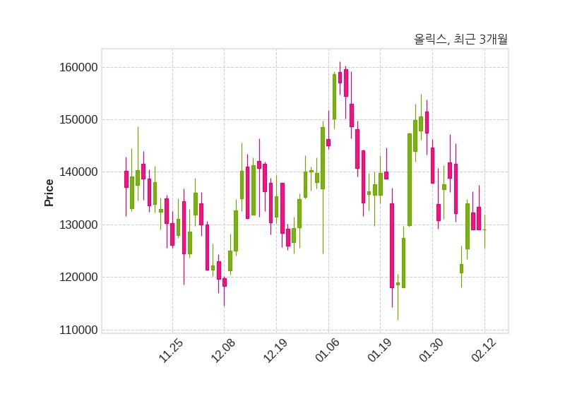 한편, 올릭스는 장 마감 이후 해당 기업공시를 발표했으며 오늘 종가가 129,100원, 거래량은 281,473주로, 직전 거래일 대비 100원(+0.08%) 상승했다.